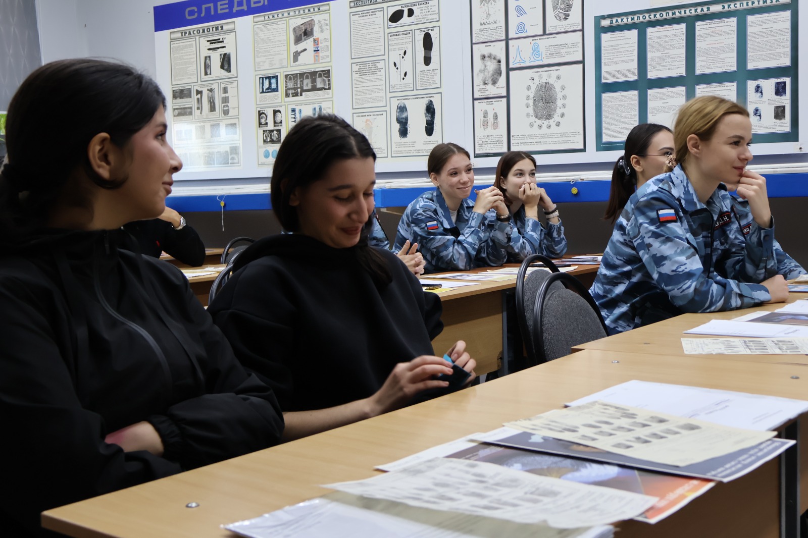 Затем ребята отправились на экскурсию по институту, посетили мастер-класс по криминалистике, который провела для них доцент кафедры уголовно-правовых дисциплин Астраханского филиала Марина Юрьевна Худякова, в ходе которого школьники ознакомились с техникой опознания преступника и приняли участие в импровизированном криминалистическом эксперименте.