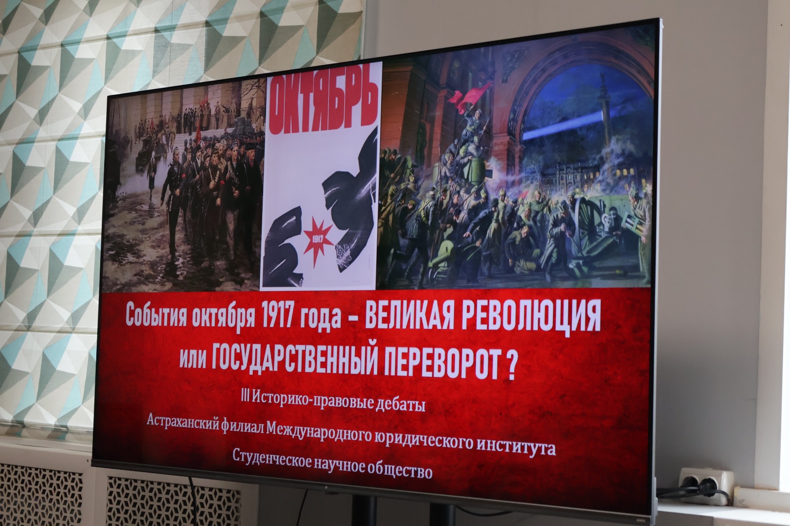 В рамках работы Студенческого научного общества (СНО) 07 ноября 2025 года в Астраханском филиале Международного юридического института состоялись III историко-правовые дебаты «События октября 1917 г. – Великая революция или государственный переворот?».