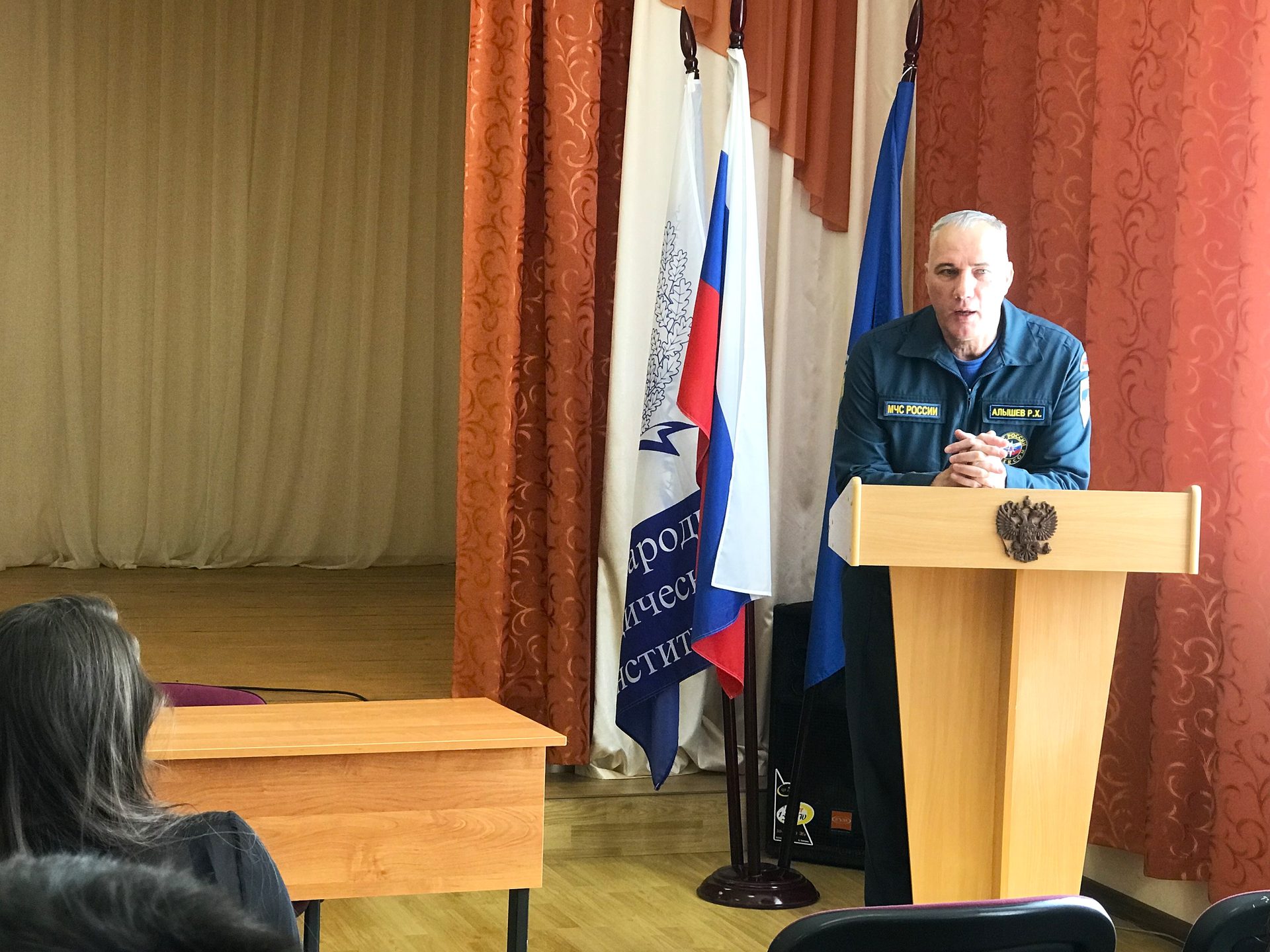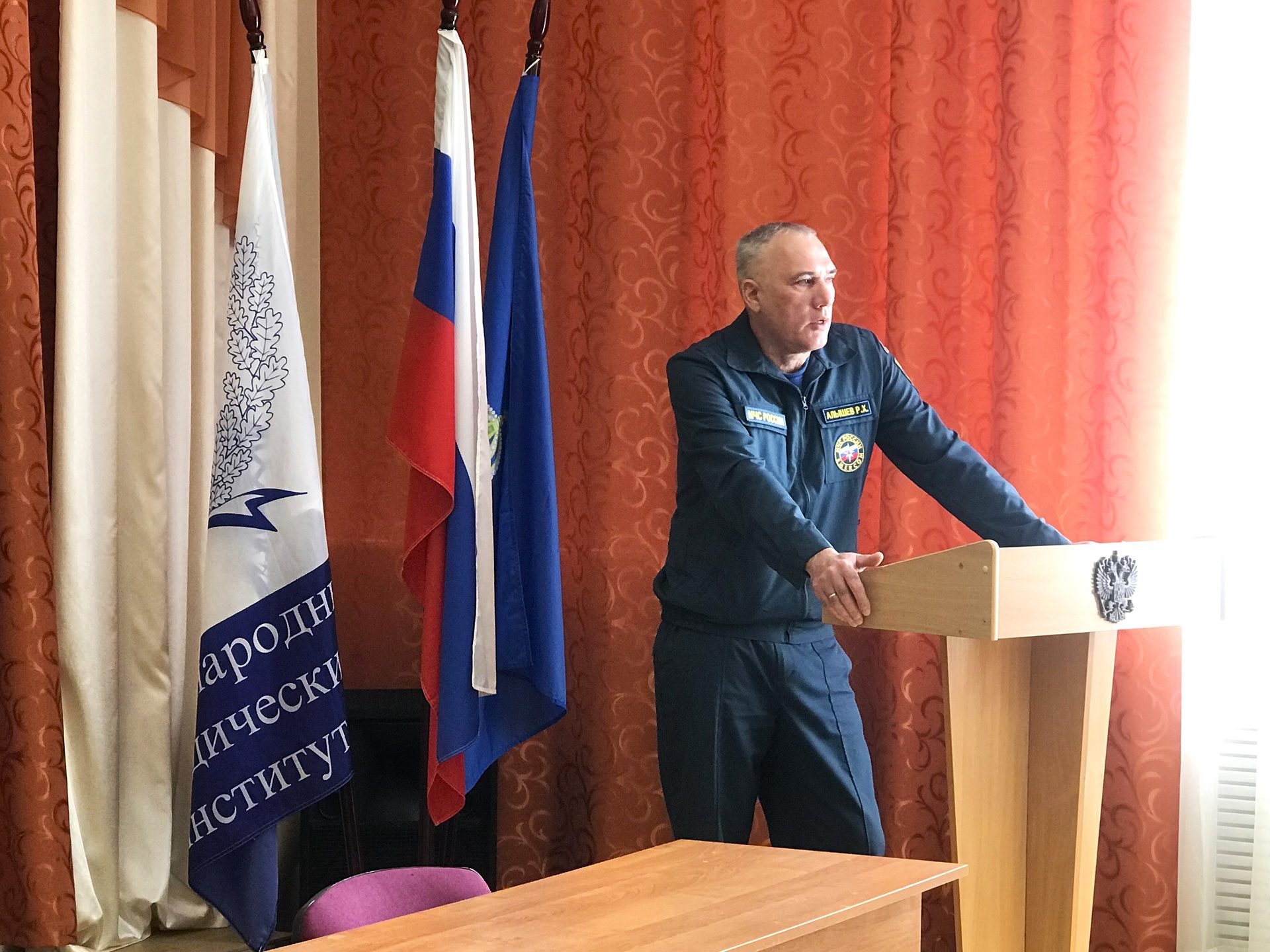 В рамках профилактической работы по антитеррору и чрезвычайным ситуациям 17.04.2026 г. в Астраханском филиале состоялась встреча с представителем Главного Управления МЧС России по Астраханской области Алышевым Рамисом Хасяновичем.