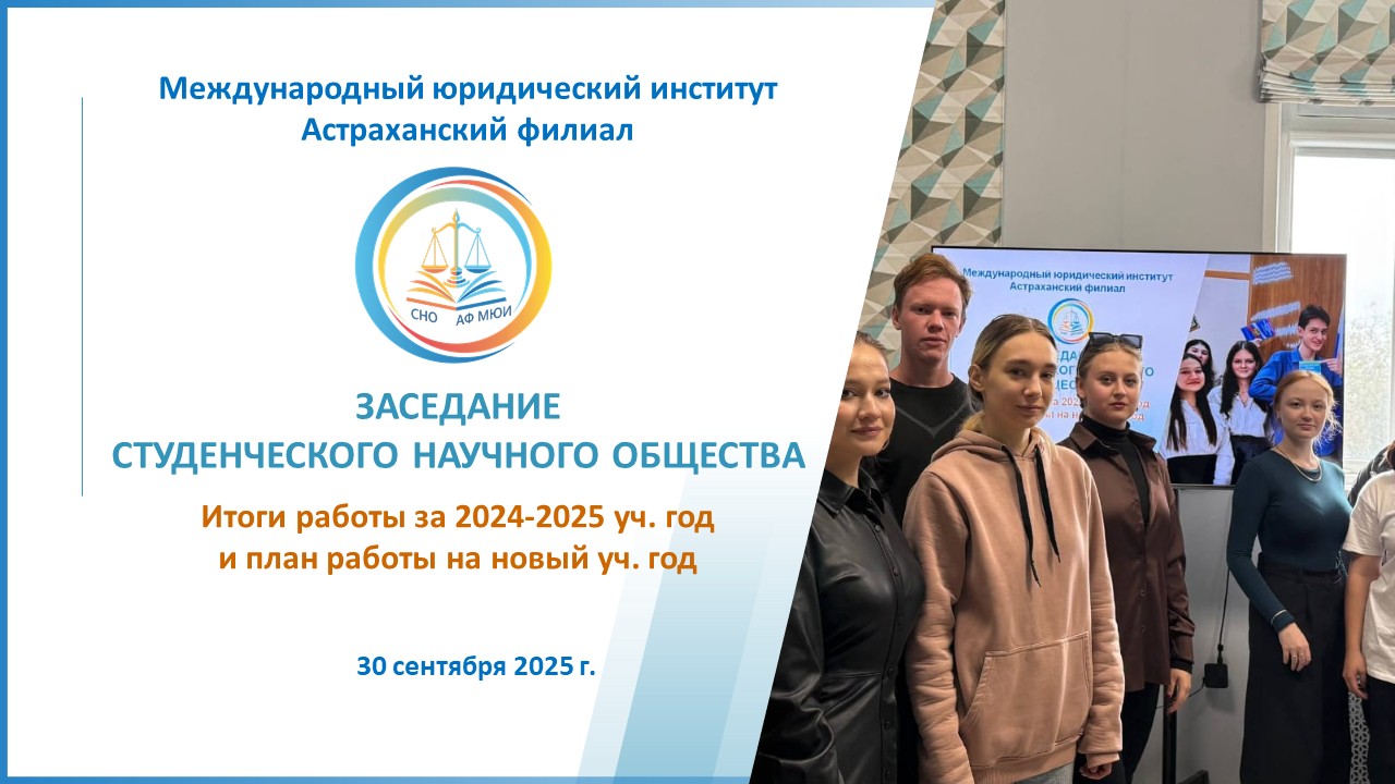 Студенческое научное общество (СНО) Астраханского филиала МЮИ начало работу в новом учебном году традиционно с отчета председателя общества о работе за прошлый год и планов на будущее.