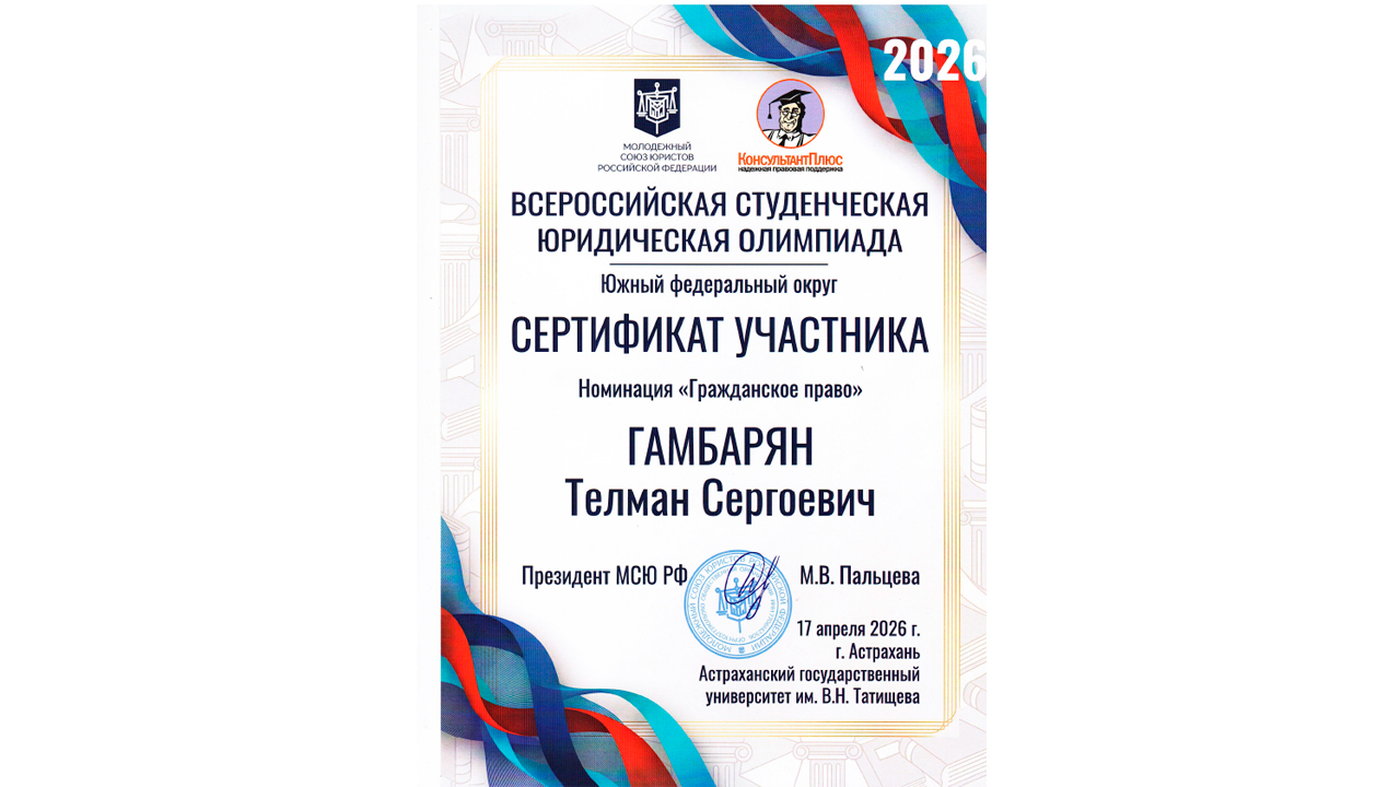 - «Гражданское право»: студент 3 курса специалитета Телман Гамбарян;