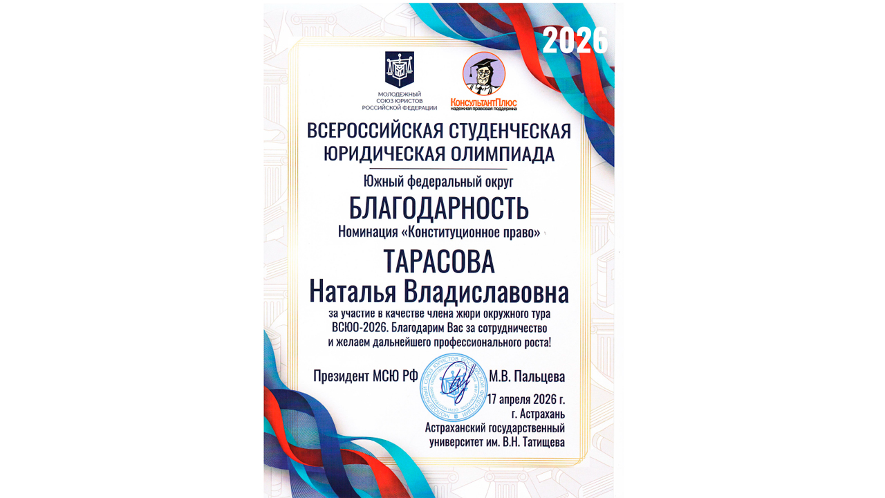 17 апреля 2026 года в Астраханском государственном университете им. В.Н. Татищева состоялся II (окружной) тур Всероссийской студенческой юридической олимпиады – 2026. Мероприятие направлено на укрепление системы юридического образования и науки, а также на развитие традиций профессиональных студенческих конкурсов в сфере права.
