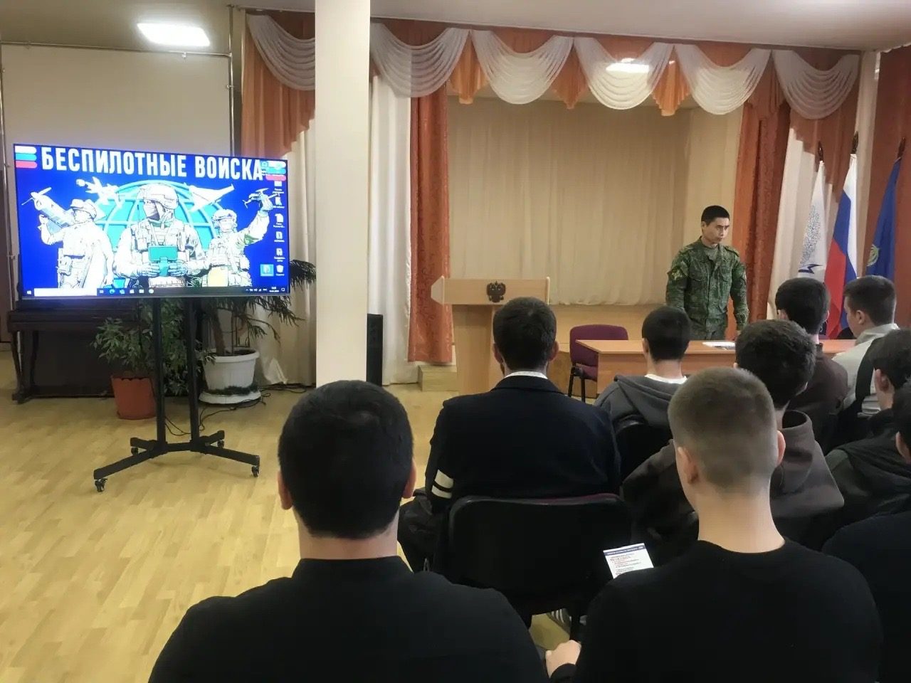 С обучающимися была проведена разъяснительная беседа на тему: «Поступление на военную службу по контракту в войска беспилотных систем» (БЛС).