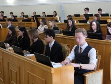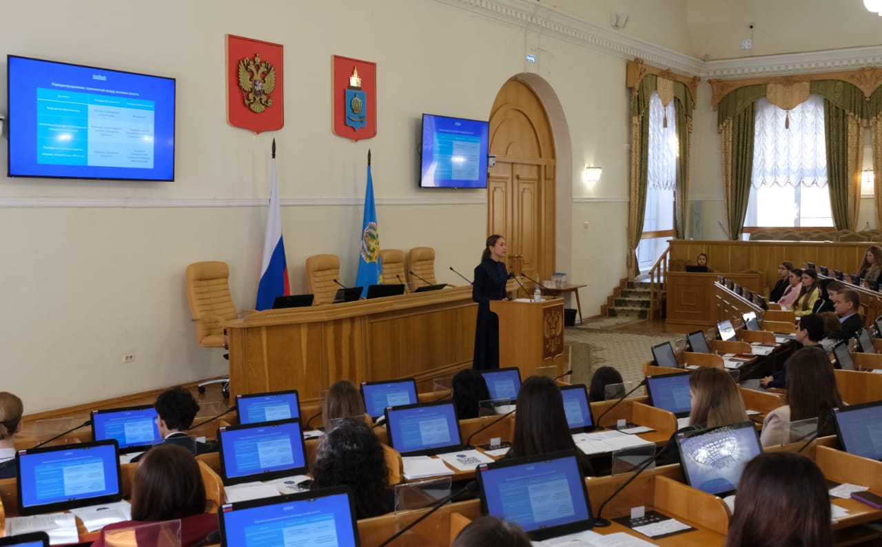 Почти сто студентов отделения СПО и ВО собрались в зале заседаний Думы Астраханской области.